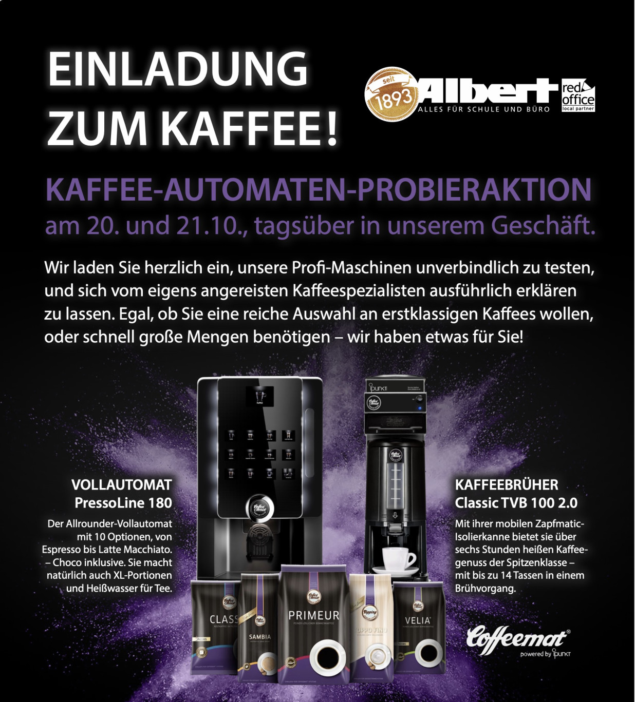 wir laden euch herzlich ein, am 20. und 21. Oktober bei uns im Ladengeschäft unsere Profi-Maschinen unverbindlich zu testen, und sich vom eigens angereisten Kaffeespezialisten ausführlich erklären zu lassen.